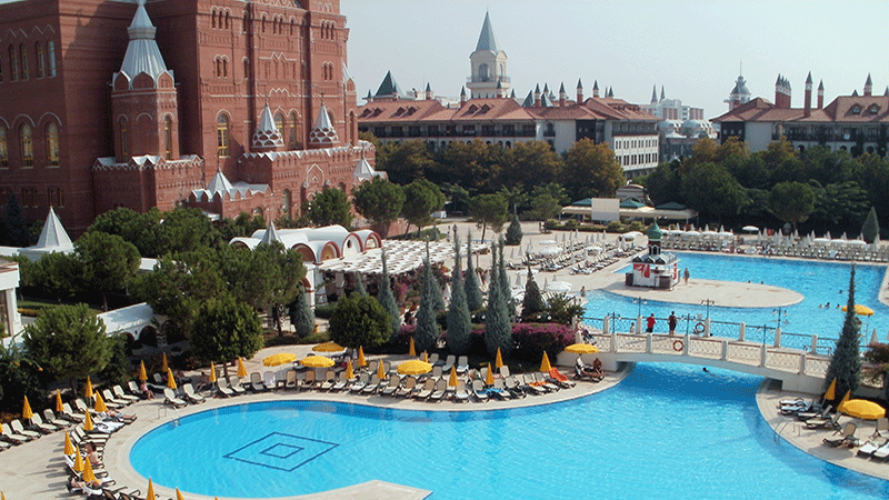 Kremlin Palace är en kopia på det överdådiga Kremlinpalatset i Moskva. Hotellet har en stor, trevlig trädgård och en lång, privat strand med en stor brygga. Det finns flera barer, nattklubb, kafé, stor bufférestaurang och inte mindre än fem à la carte-restauranger. Hotellet har ett stort och fint poolområde med flera pooler och vattenrutschkanor. Det finns även shoppingmöjligheter på området och faciliteter som åtta tennisbanor, gym och fitnesscenter, bastu, hamam, inomhuspool (uppvärmd vintertid), biljard, squash, volleyboll, bra joggingmöjligheter, bowling, spelrum och mycket mer. Hotellets aktivitetsteam ordnar motionspass och underhållning dagligen. Det finns även olika uppträdanden ett par dagar i veckan under högsäsong. Några aktiviteter/faciliteter mot kostnad.
