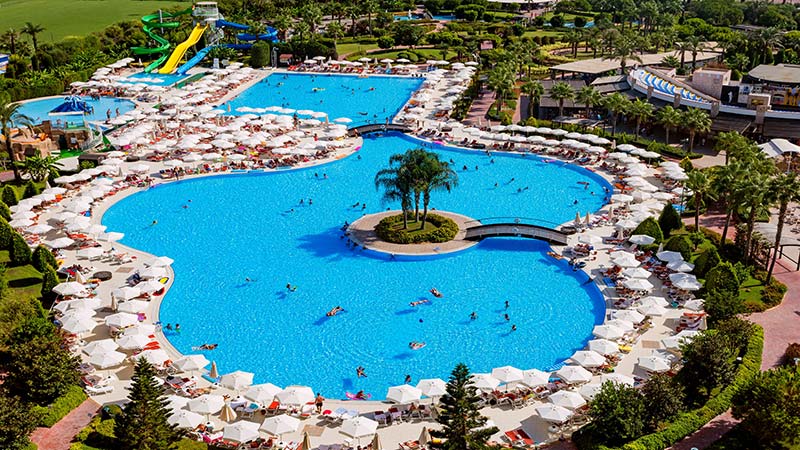 5* Hotel Miracle Resort är beläget precis vid stranden och har allt man kan önska för ett lyckat läger.