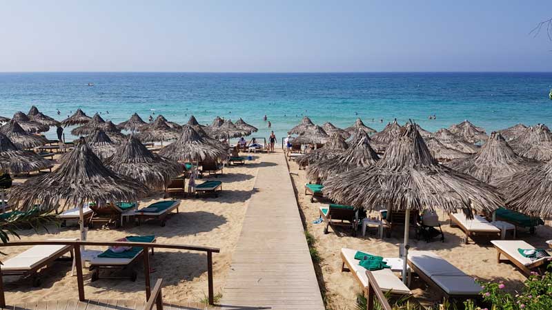 4* Panthea Village bidrar med utsikt över Medelhavet eller den stora trädgården. Hotellet erbjuder inomhuspool, utomhuspool, massage, fitnesscenter, tennisbana och bastu.